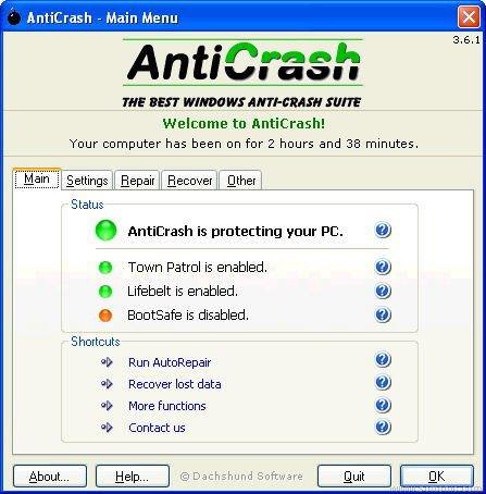 dan lain-lain. Ketika masalah crash terjadi, AntiCrash secara otomatis
